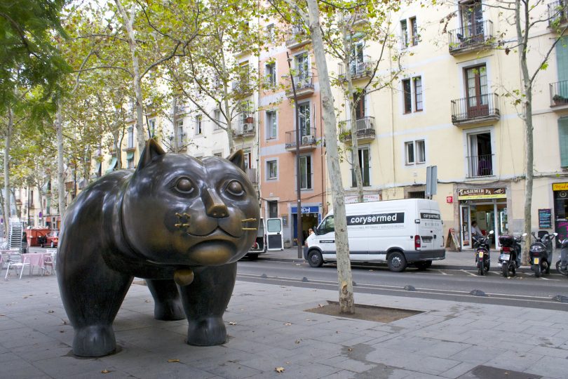 É muito fácil dizer o que mais atrai nossa atenção no bairro. Em plena Rambla del Raval, um gato escuro, grande e robusto cativa qualquer pessoa que passe pelo local. O felino feito de bronze, conhecido como el Gat de Botero, é obra do colombiano Fernando Botero.