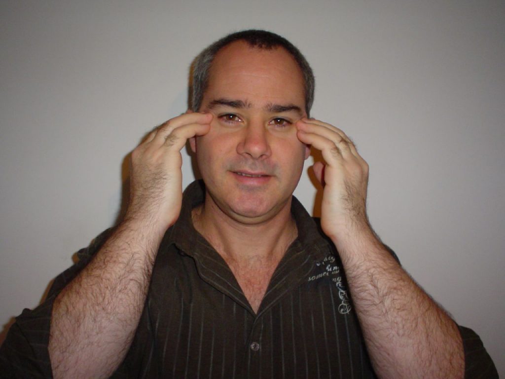 - Debaixo dos olhos: os toques devem ser dados nos ossos que existem abaixo dos olhos, a aproximadamente dois dedos de distância das pupilas.