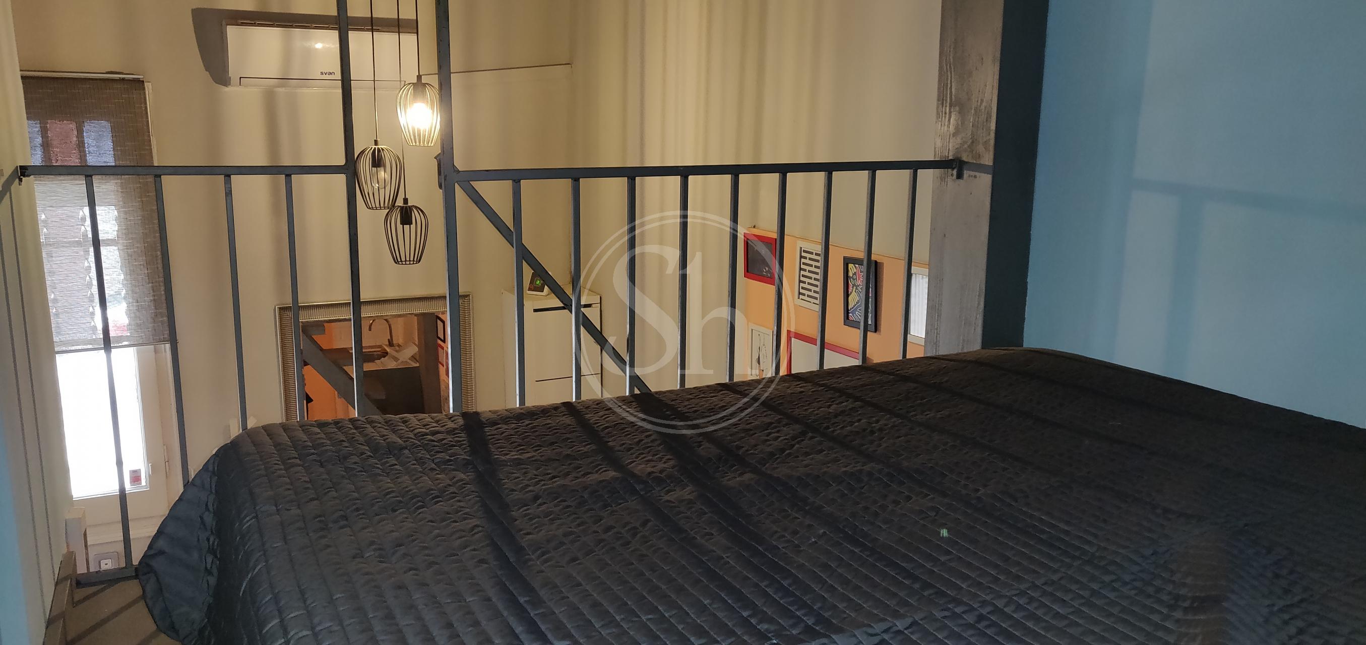 Loft en alquiler en Sants Montjuïc, en el barrio del Badal de Barcelona. Piso de 20m2 habitables con suelo de parquet. El piso dispone de cocina equipada con, vitrocerámica, nevera y microondas. Hay un altillo de 4m2 donde se encuentra la zona de noche con cama doble. Techo de volta catalana y suelo de parquet sintético. El baño de la vivienda tiene plato de ducha. Planta baja en finca sin ascensor con terrado de uso comunitario.